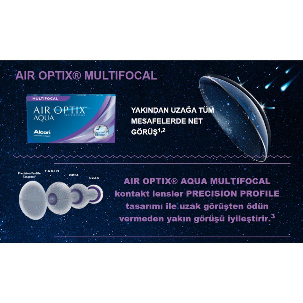 Air Optix Aqua Multifocal (3 lenses) . Air Optix Aqua Multifocal contact lenses are usually cheaper online than in brick-and-mortar stores With Air Optix Aqua Multifocal lenses, enjoy the convenience of reading and distance prescription all in one lens.